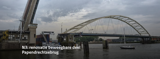 De Papendrechtsebrug (N3) is een belangrijke verbinding tussen Papendrecht en Dordrecht en het verkeersnetwerk van de Drechtsteden. Het beweegbare deel van de brug nadert het einde van zijn technische levensduur en moet worden vervangen. Informatie over de renovatie van het beweegbare deel van de brug. Of klik op onderstaande afbeelding.
