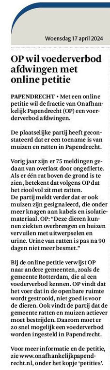 De APV werd in juni 2024 geactualiseerd en bij deze actualisatie hebben wij het voederverbod in de openbare ruimte door middel van een amendement een plek in de APV gegeven.